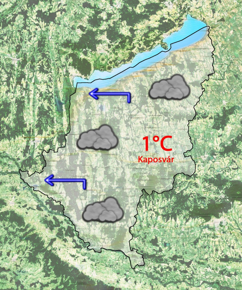 Szerda napközben borult lesz az ég és csak 1°C-ig melegszik a levegő hőmérséklete. Borongós koratélies idő várható gyenge keleti széllel.