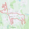 Ehhez 45 kilométert kellett tekerni hat órán keresztül. A kerékpáros a Donnerből indulva elbiciklizett a Búzavirág lakótelepen túlra, érintette a kisgáti városrészt, de Szentjakab felé is el kellett kanyarodnia, hogy az óriási rénszarvasnak lábakat rajzoljon.