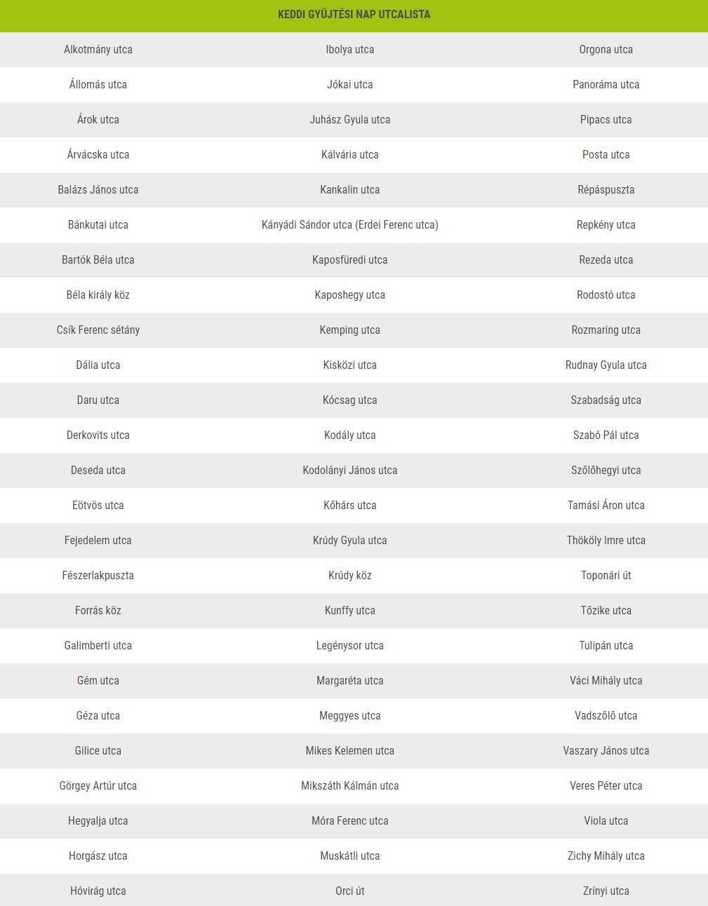 A kaposvári kertekben, udvarokban, konyhában keletkező növényi szerves hulladékokat ingyenesen gyűjti be a szolgáltató. Mutatjuk a 2021-es listát utcákra lebontva.