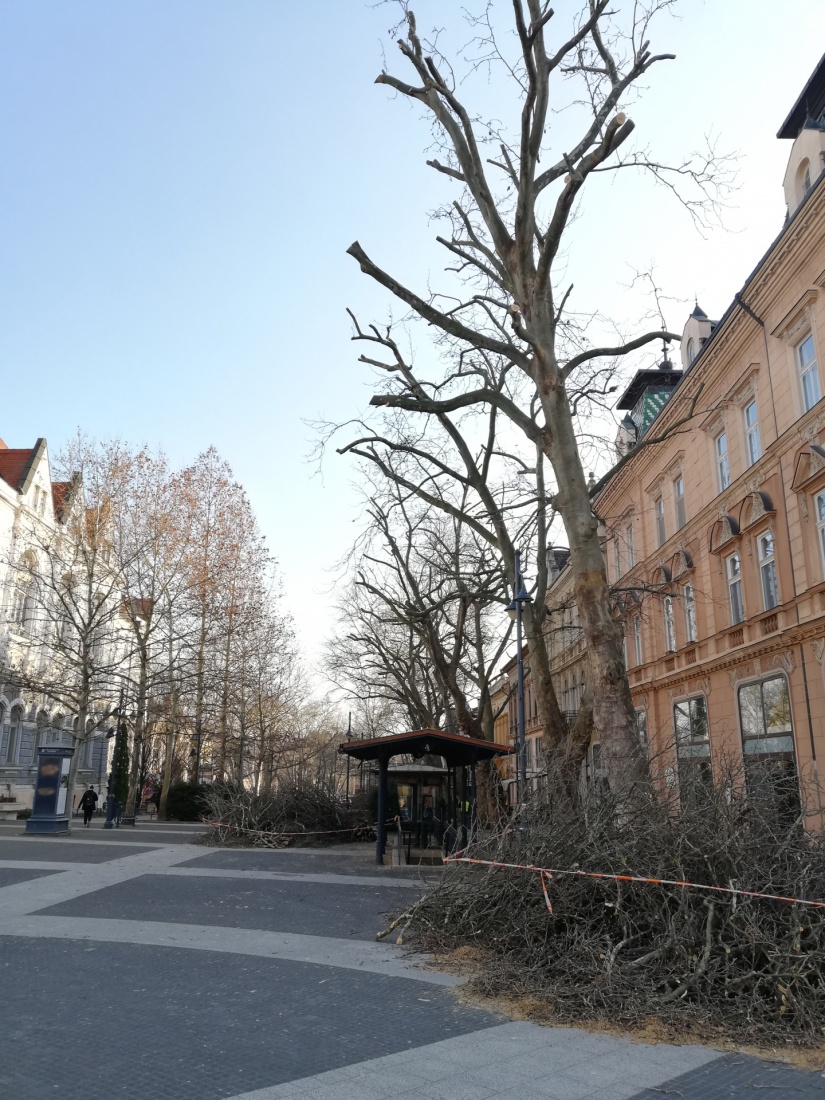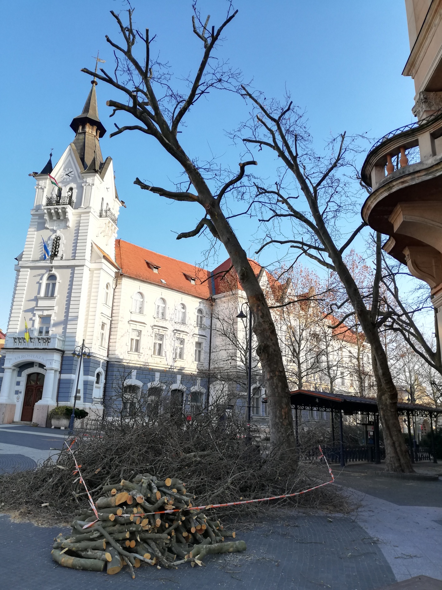 A munkálatok során a Noszlopy Gáspár utca fasoráról már levágták az elszáradt, valamint a tetőszint fölé érő faágakat. Tavaly már beszámoltunk arról, hogy a fasor vizsgálata során kiderült, hogy több fa már menthetetlen, viszont a kivágásuk során még a munkások is meglepődtek, hogy belül milyen állapotban voltak: egy-két fa törzsét szinte már csak a kéreg tartotta, belülről üregesek voltak.