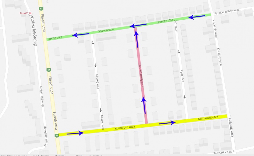 - a Szombathely utca forgalmi iránya megváltozik: a Komárom utca felől lesz egyirányú a Sopron utca felé,