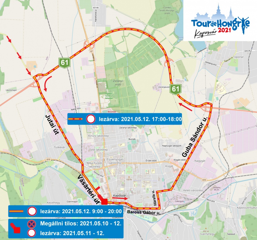 Kaposvár több pontján is útlezárásokra, forgalomelterelésekre kell majd számítani május 12-én, a Tour de Hongrie kerékpáros körverseny első napjának befutójakor. A verseny rendkívül látványos, a kerékpárosok akár 80 kilométeres óránkénti sebességet is elérik a küzdelem során. Éppen ezért kiemelten fontos a biztonságos versenykörülmények biztosítása a számukra.