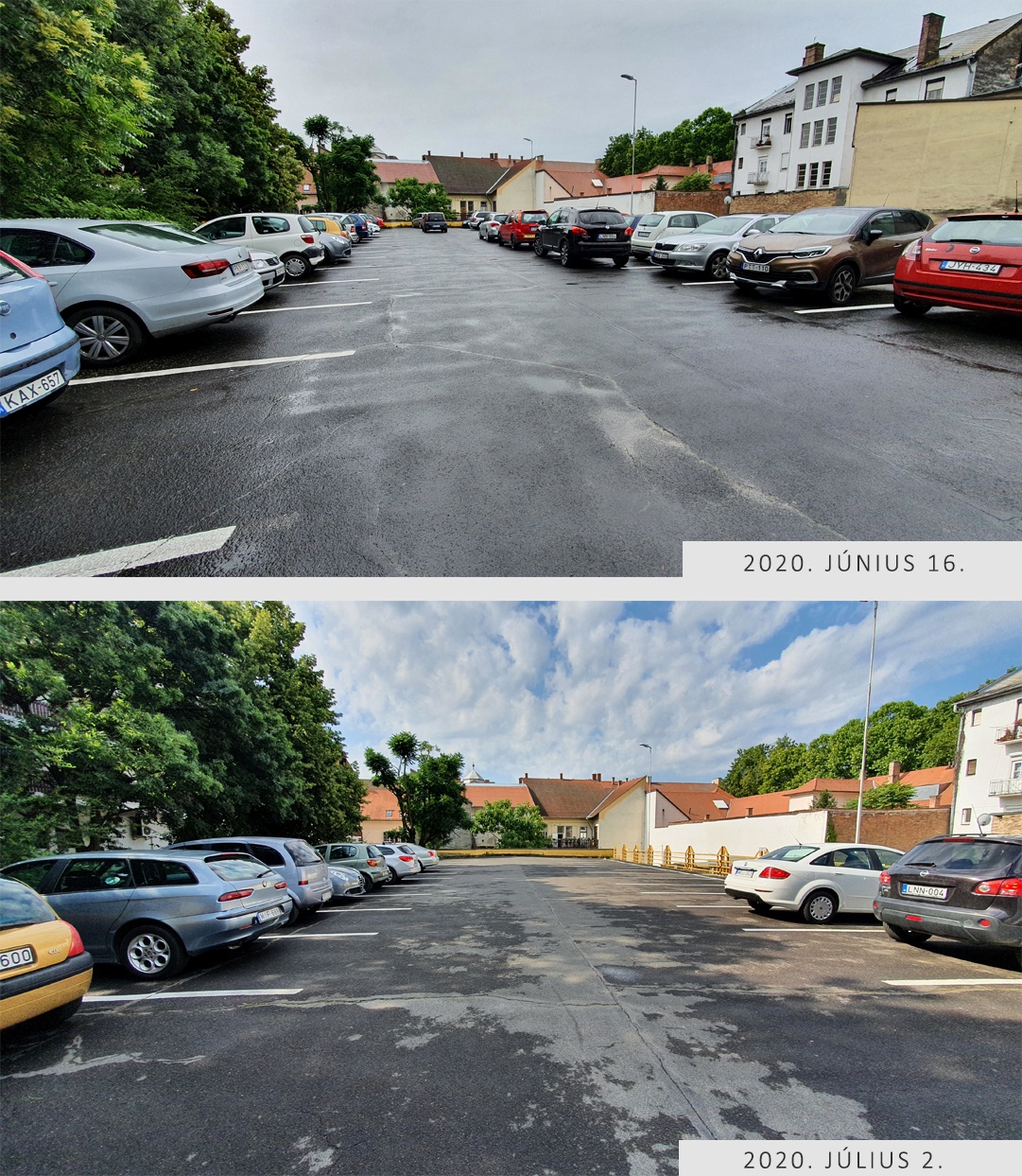 Végül 2020. július elsejétől a kormány visszaállította a fizetős parkolást. Az alábbi kép jól szemlélteti a változást. A felső fotó 2020. június 16-án délelőtt 10 órakor készült, az alsó kép pedig 2020. július 2-án, délelőtt háromnegyed 10 körül.
