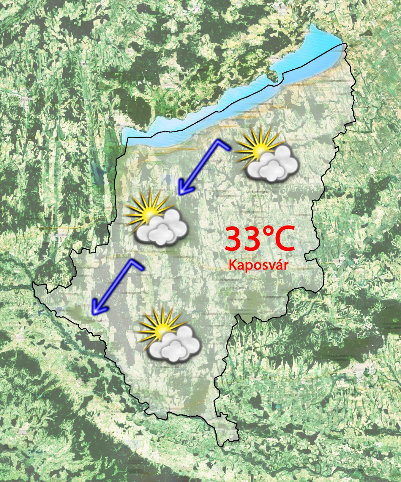 Péntek délután 32°C-ig emelkedik a hőmérő higanyszála. Változóan felhős, nyárias idő várható szélcsend mellett.
