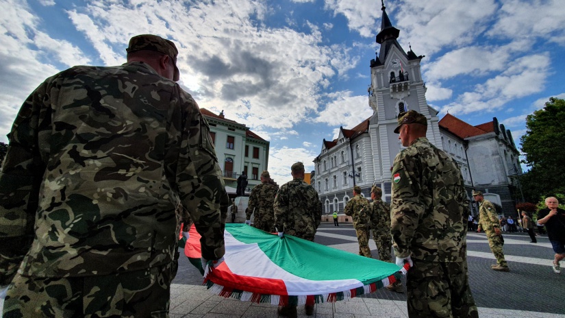 Katonai tiszteletadás mellett vonták fel Magyarország zászlaját pénteken délelőtt a Kossuth téren. Ezt követően Varga László megyéspüspök ünnepi szentmisét celebrált. A délelőtti programokat a Somogy Táncegyüttes és a Somogy Zenekar műsora és Szita Károly polgármester beszéde zárta.