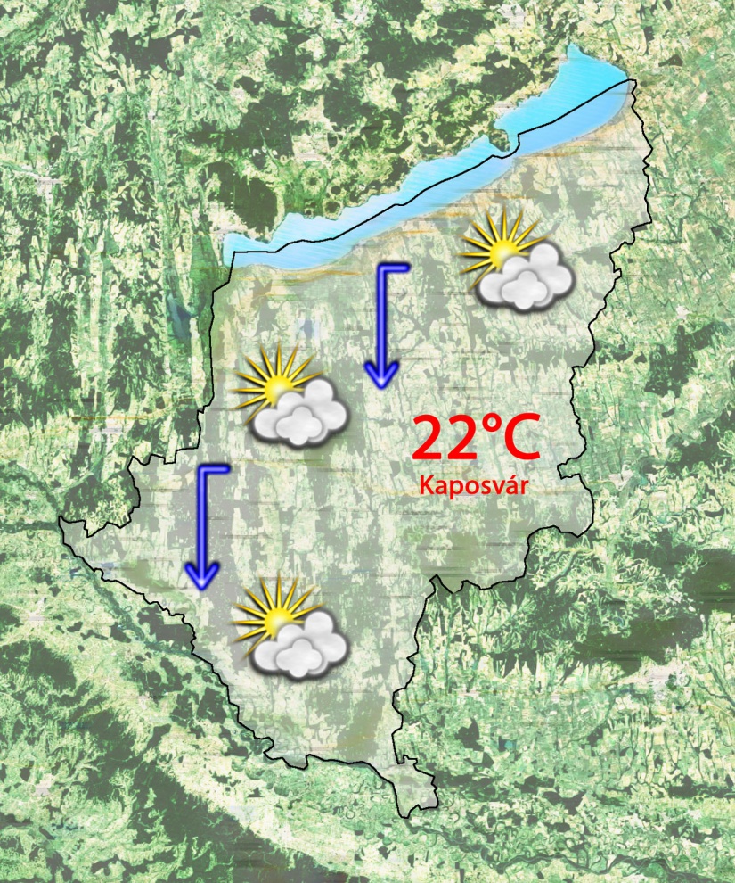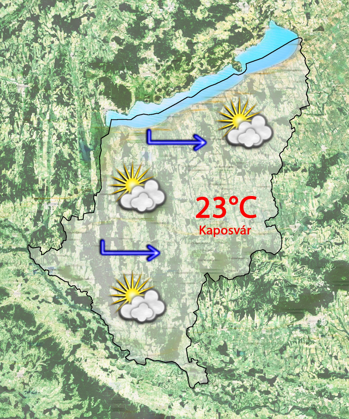Kora őszies idő várható a hét további részében, 23 °C körüli maximumokkal. A hétvégére komoly csapadék érkezik a térségünkbe. Középtávú előrejelzés Kaposvár és környékére.