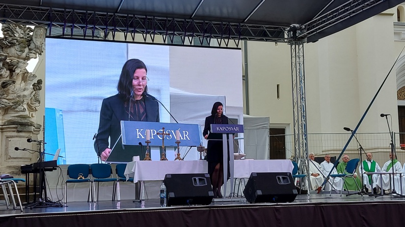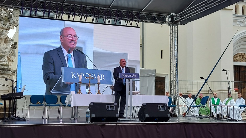 A szentmise és a műsor előtt az összegyűlt vendégek az ünnepi beszédeket hallgathatták meg. Szita Károly, Kaposvár polgármestere elmondta, tavaly állítottak emléket Márton Áron előtt egy gyönyörű szoborral, amire méltán lehetnek büszkék a kaposváriak. Majd úgy fogalmazott, hogy a szobrot a csíksomlyói búcsújáróknak köszönhetjük.
