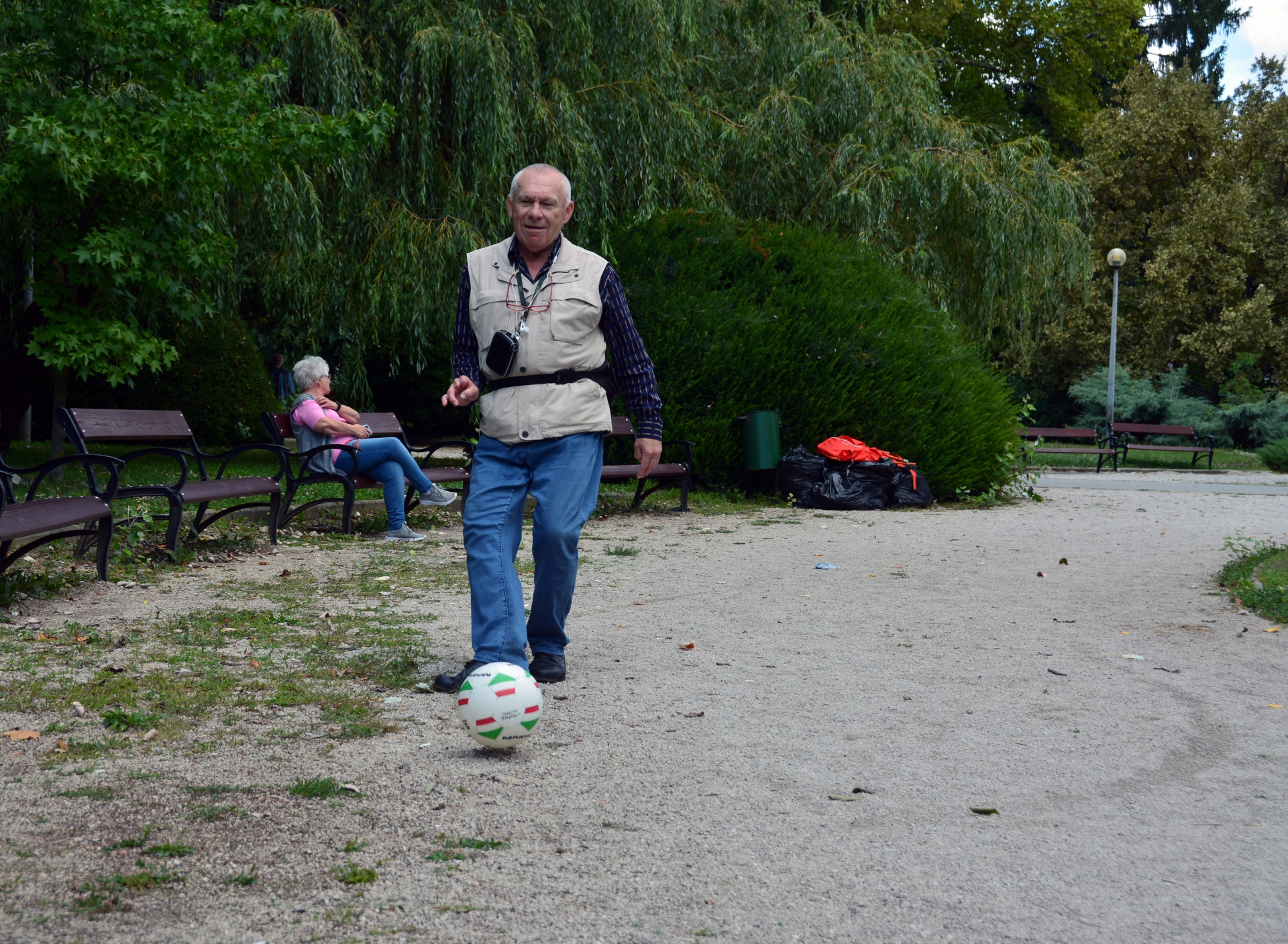 "A Berzsenyi parkban jártam, ahol találkoztam az idős baráti párral. Olyan szívmelengető volt látni, ahogy labdáznak, és az arra járókat is bevonták pár perc focizásba. Nagyon jó kedvem lett tőle. Beszélgettem is velük, Zoli bácsi és Marika néni a Sávházban laknak, és idejárnak, ebbe a szép parkba majdnem mindennap focizni és levegőzni. Igazán példaértékű lehet ez másoknak is" – írta Németh Csilla.