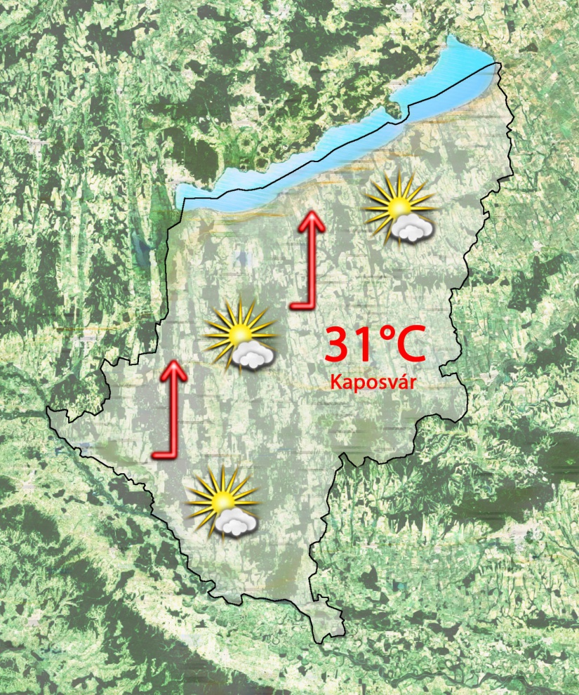 Szerda napközben szikrázóan napos idő várható és 31°C-ig melegszik a levegő hőmérséklete. A szél délről fog fújni gyengén.