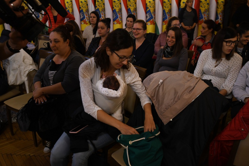 A Családbarát Magyarország és a Napkerék Egyesület hétfő délelőtt a kaposvári kismamák számára adott át ajándékcsomagot a Városháza dísztermében.