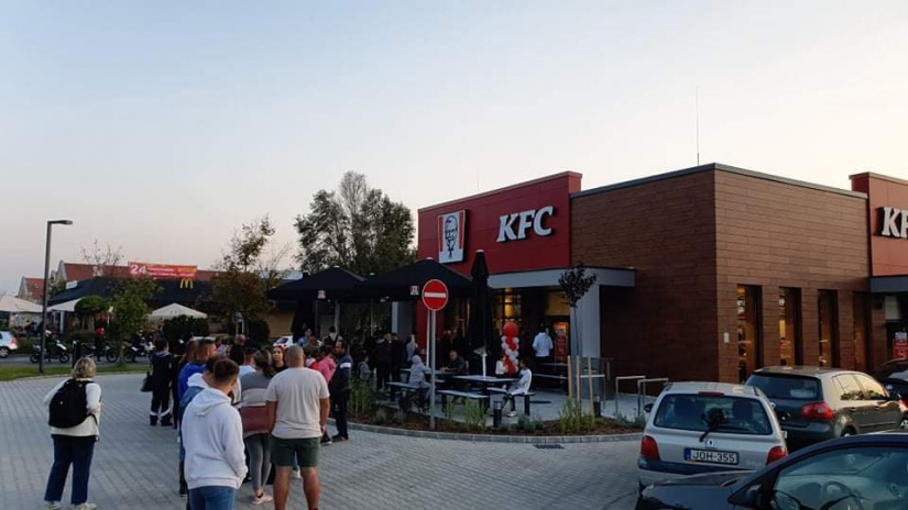 Az étterem előtt pedig szinte káosz uralkodik, nagyon sokan várják, hogy bejussanak és megkóstolhassák végre a kaposvári KFC kínálatait.