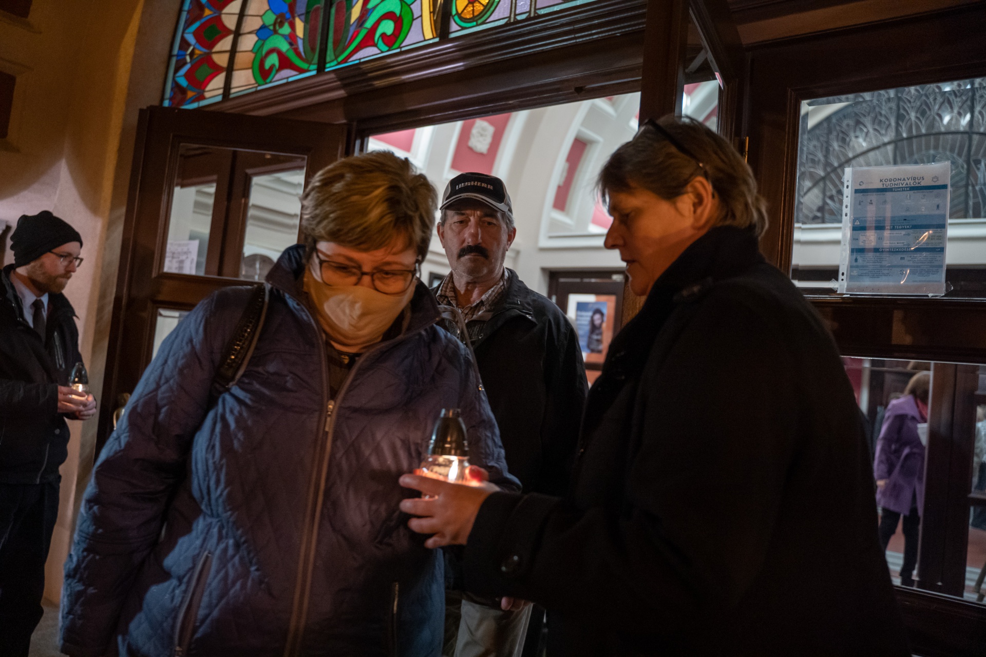 Ezt követően a nézők elhelyezték a megemlékezés gyertyáit a Szivárvány Kultúrpalota előtti lépcsőn.