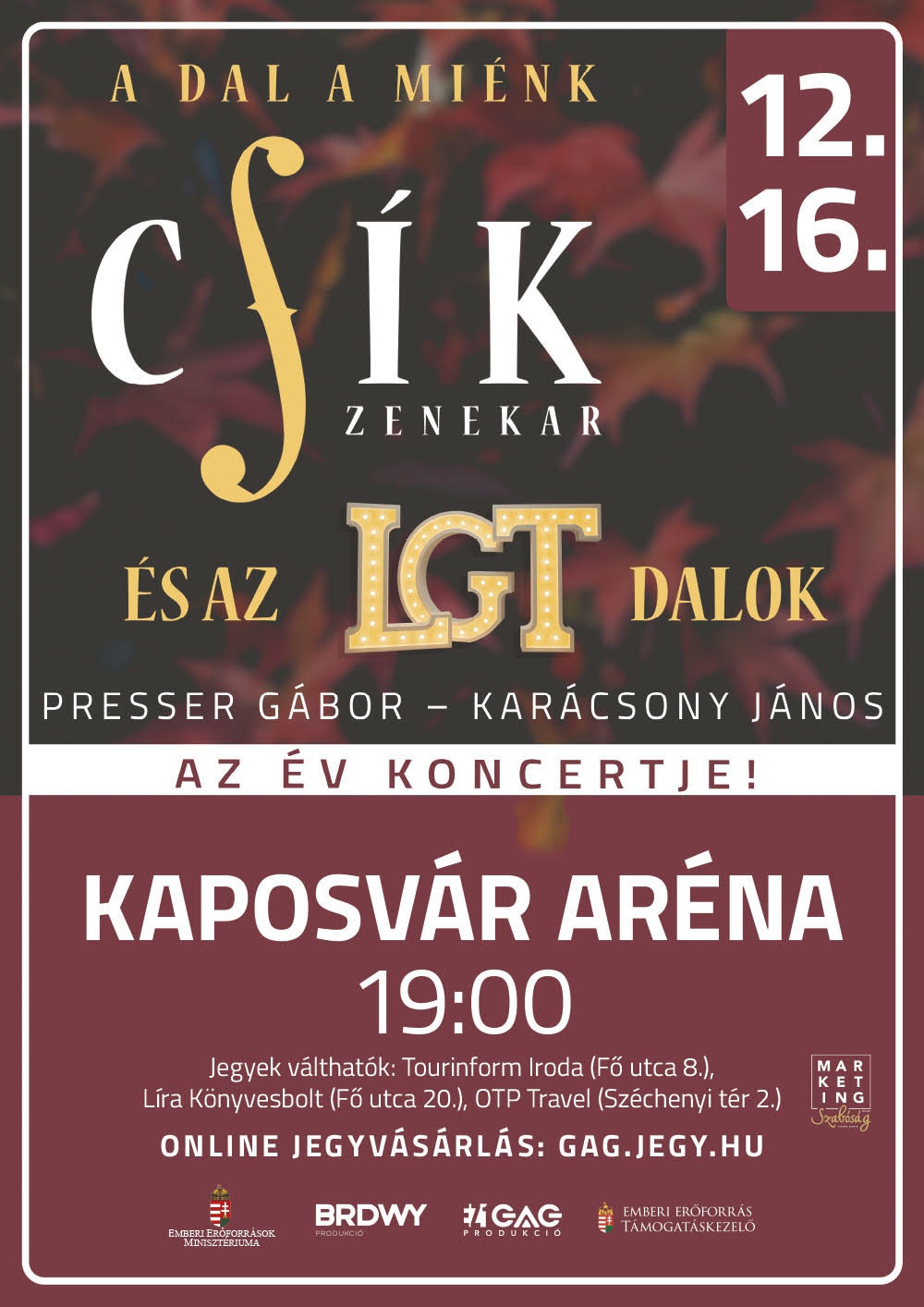 Mindenkit szeretettel várnak a Kaposvár Arénába, 2021. december 16-án 19 órától. Jegyek kaphatók a Tourinform irodában, a Líra könyvesboltban, az OTP Travel irodájában és online a gag.jegy.hu oldalon.