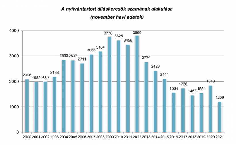 Már októberben is kevesebb mint 1300-an voltak az álláskeresők, novemberben azonban tovább javult a helyzet, hiszen mostanra csupán 1209 vannak regisztrálva a Somogy Megyei Kormányhivatalnál. Az előző év novemberéhez képest 639-el többen dolgoznak, ez 34,6 százalékos javulást jelent.