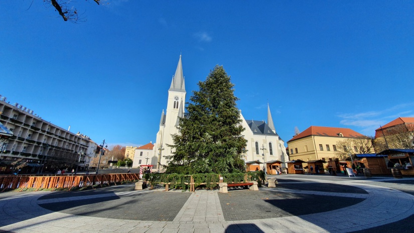 Többen is jelezték, hogy ferdén áll Kaposvár karácsonyfája. Megnéztük, valóban eltér a függőlegestől a fa pozíciója. Rá is kérdeztünk, hogy mi lehet az oka. Azt a választ kaptuk, hogy a csütörtöki erős széllökések megbillentették a több tonnás fát, de a föld alatti fogadószerkezetben továbbra is stabilan áll, így kidőlni nem fog.