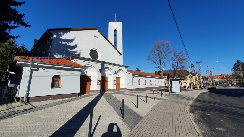 A Szent Kereszt-templom előtti terület megújítása viszont elkészült, a kőkereszt azonban még nem került vissza a helyére.