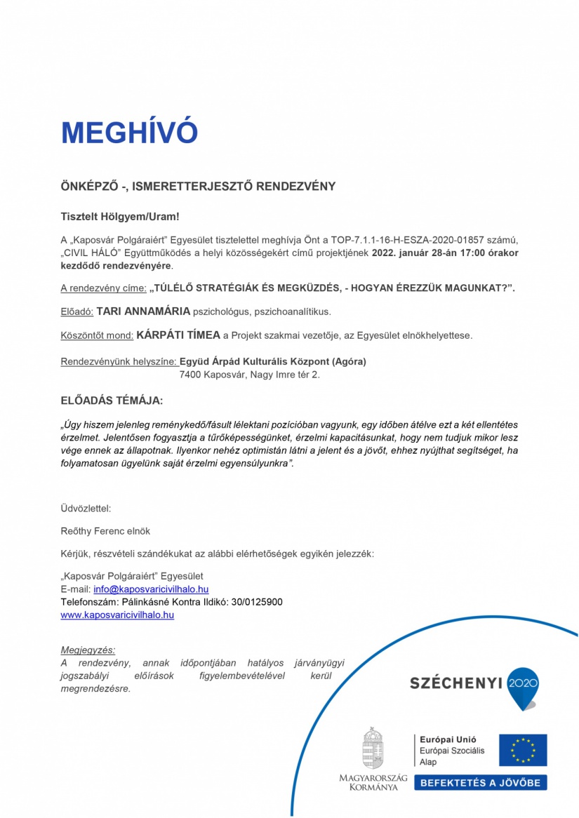 - E-mailben: info@kaposvaricivilhalo.hu