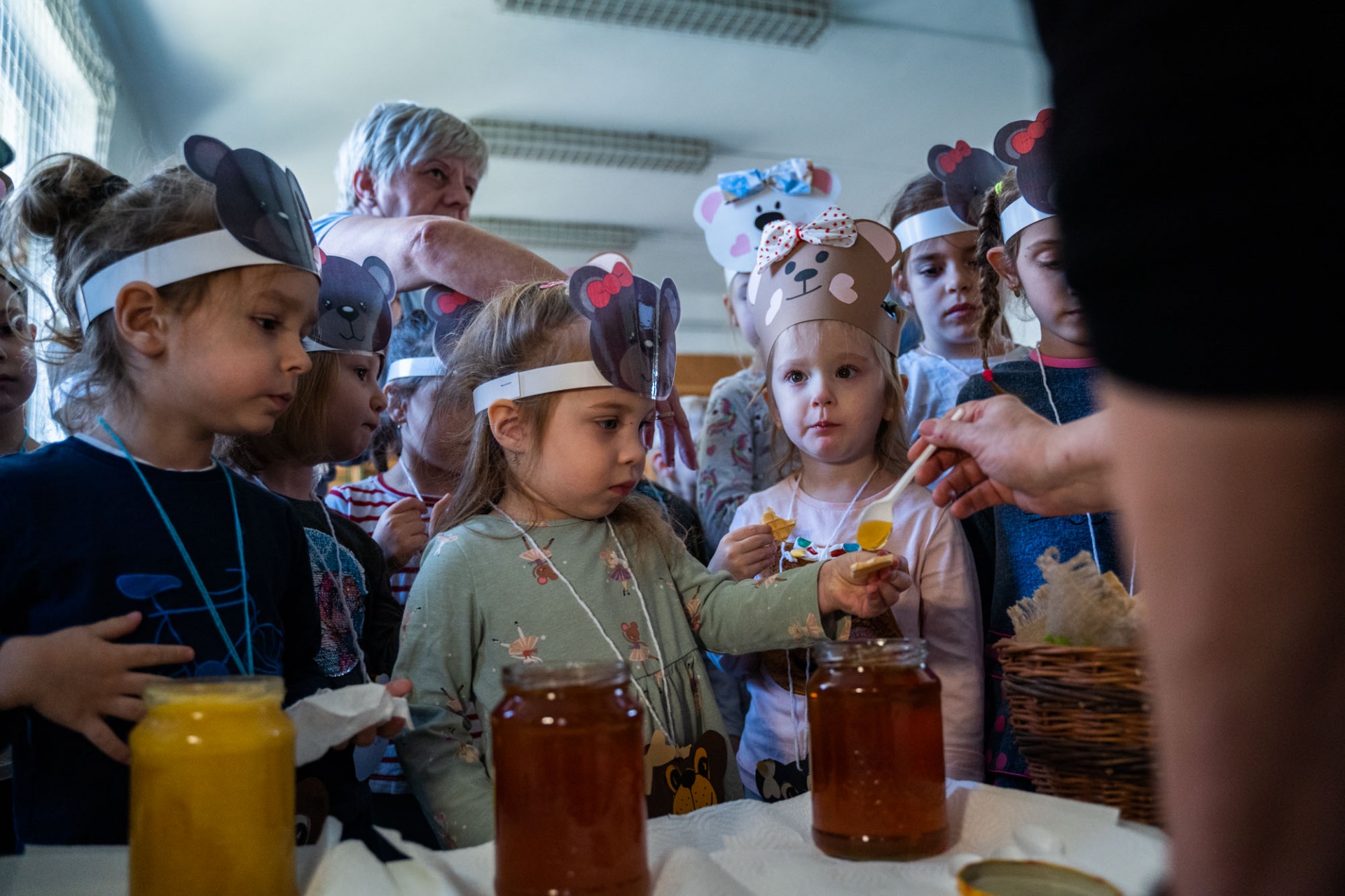 A maci napon nemcsak a medvékkel, de a mézzel is megismerkednek a kicsik.