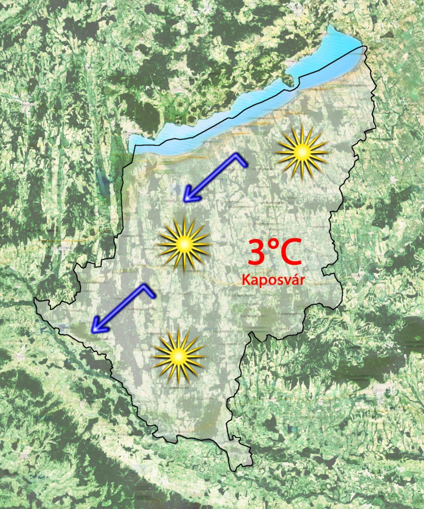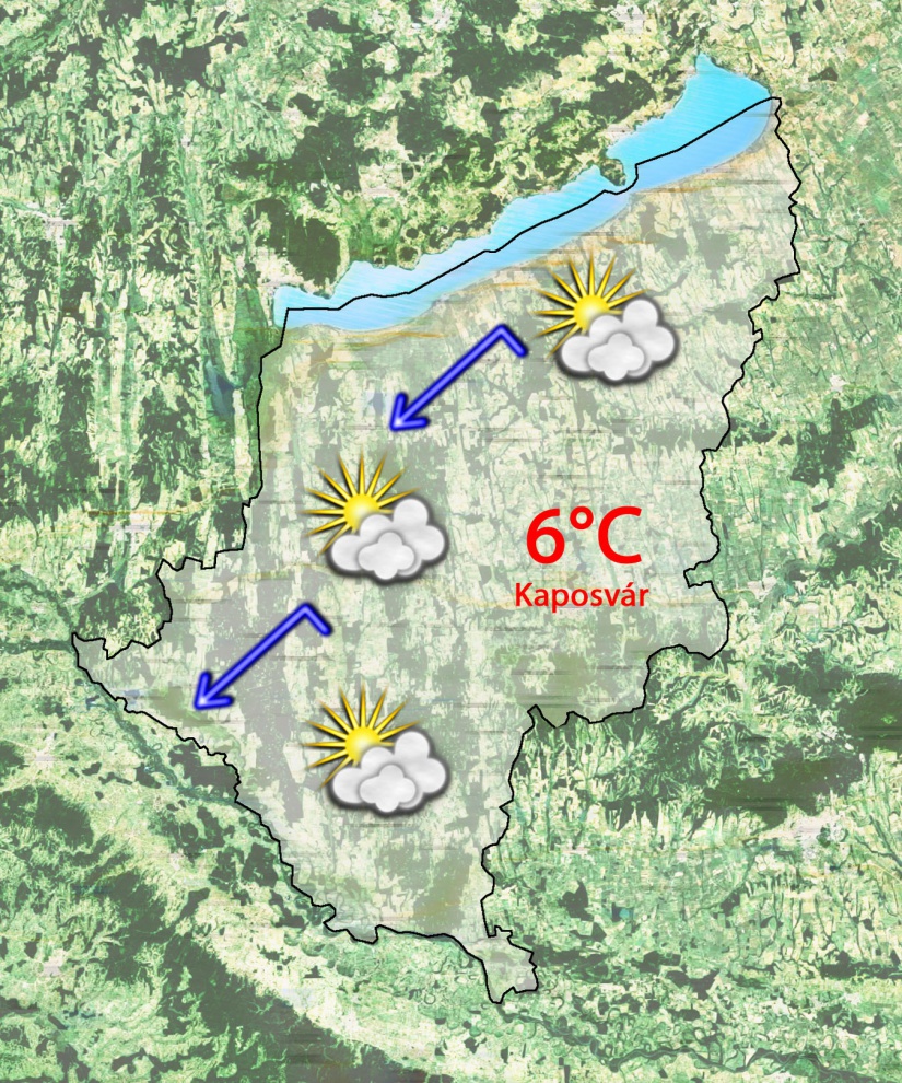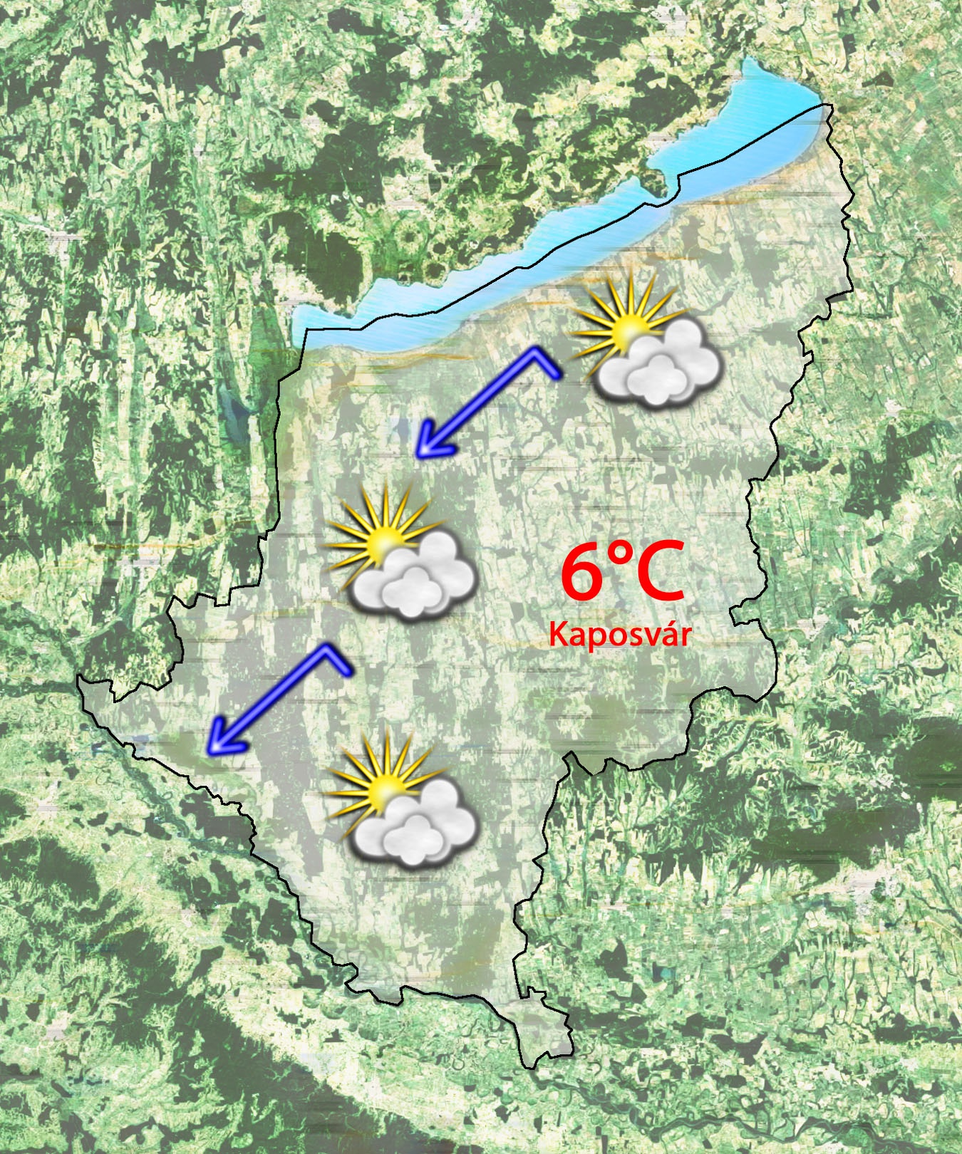 Csütörtök reggel -4°C-ig csökken a hőmérséklet a változóan, olykor erősen felhős ég alatt. Napközben továbbra is változóan, olykor erősen felhős lesz az ég. Délután 6 fokig emelkedik a hőmérő higanyszála. Északkelet felől fog fújni a szél. Megkezdődik a hidegebb levegő beáramlása.