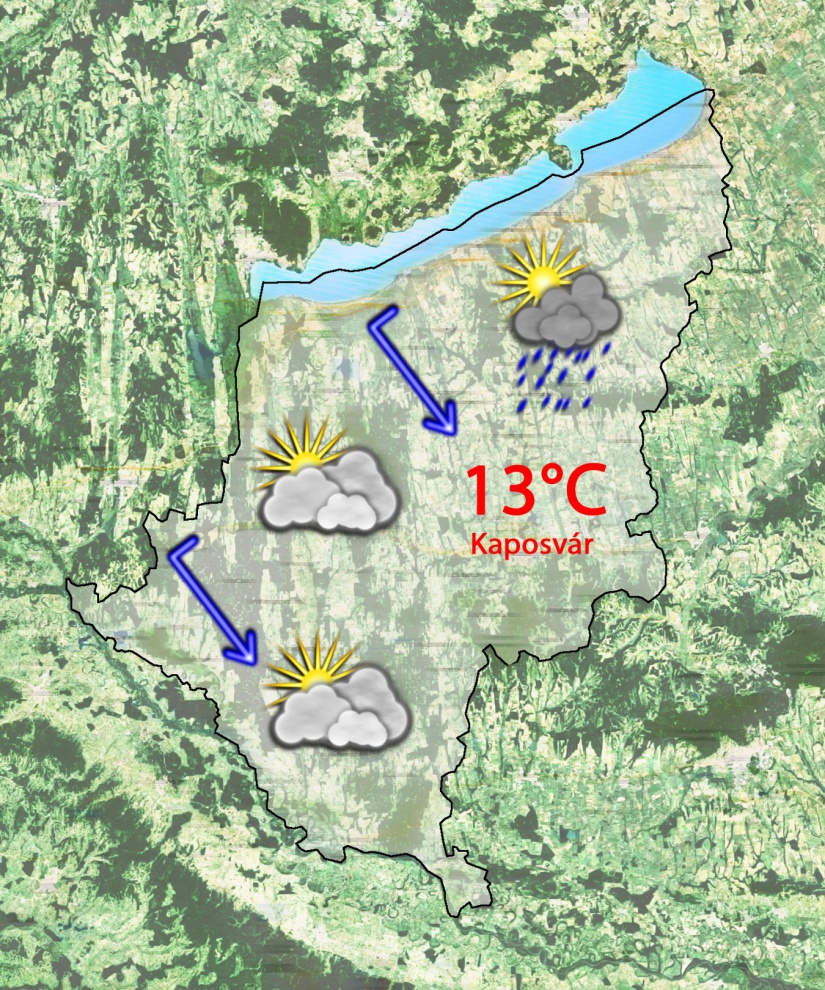 Átmeneti melegedés után hidegfront érkezett és lehűlést hoz magával. Középtávú előrejelzés Kaposvár és környékére.