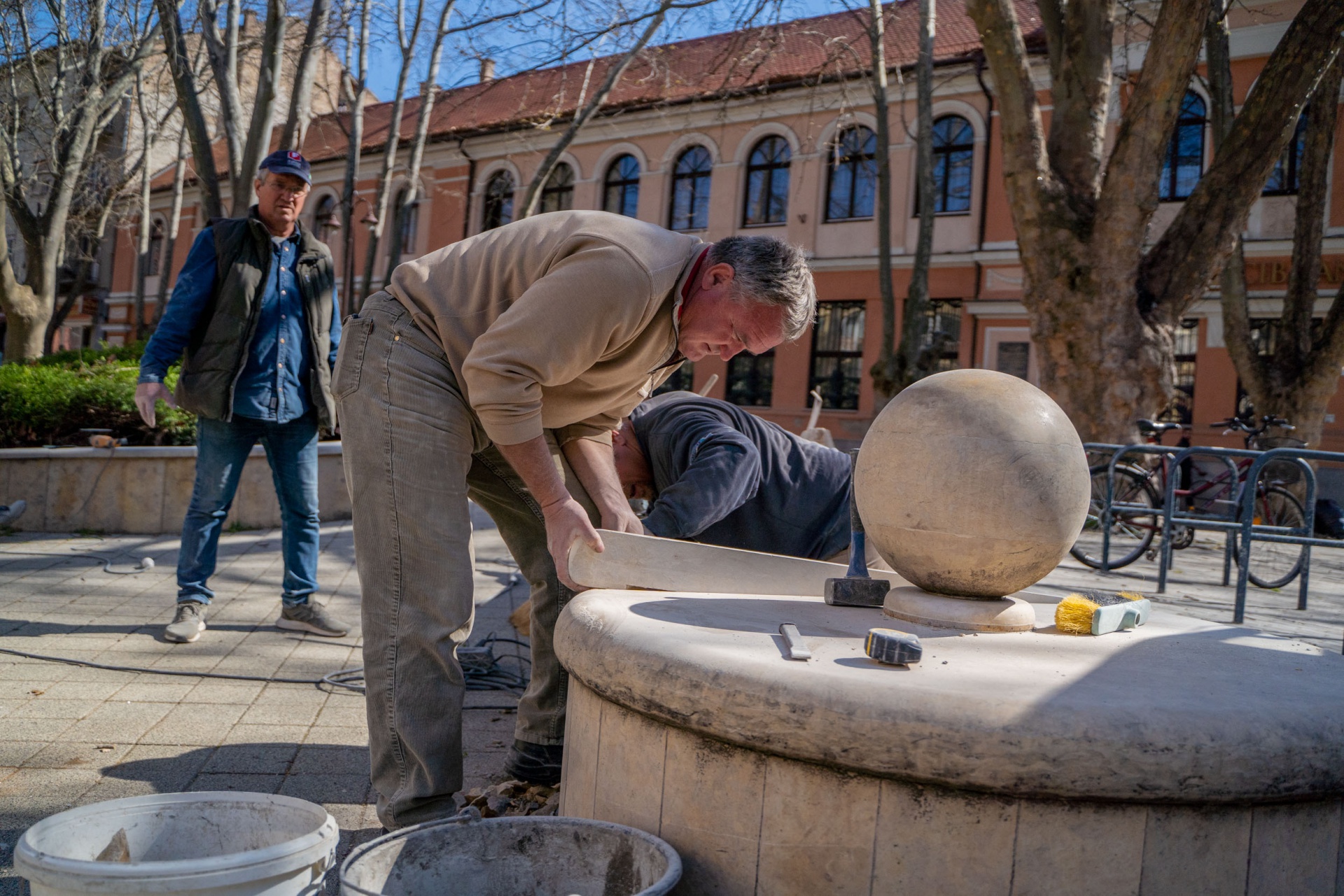 Több mint két évtizede épült Kaposvár egyik legszebb, marokkói mészkőből készült szökőkútja. A 2000-ben átadott csobogó és környezete azóta megsínylette a téli fagyokat.