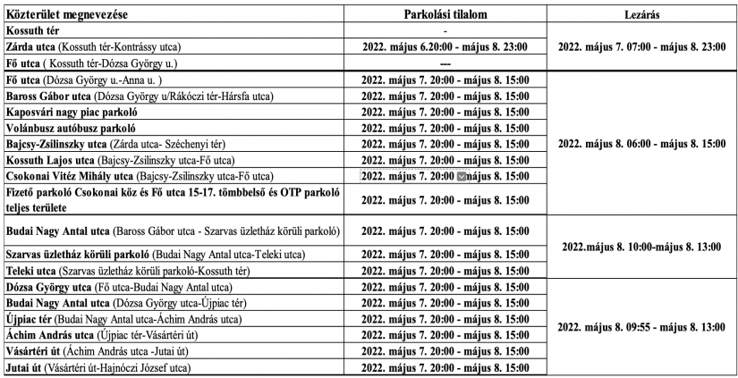 Mutatjuk, mely utcákra és parkolókra lesz érvényes a lezárás és a tilalom: