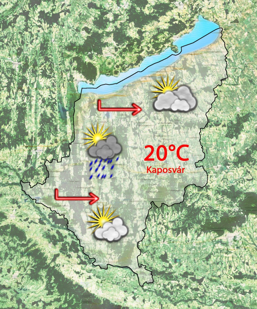 Kedd reggel változóan felhős lesz az ég és 8°C-ig csökken a hőmérséklet. Napközben közepesen, olykor erősen gomolyfelhős idő várható és 20 fok is lehet. Késődélután egyre több helyen lehet záporeső, zivatar. Gyenge északnyugati szél fúj majd.