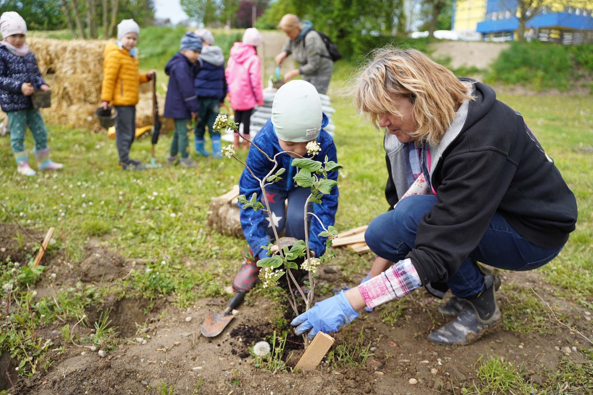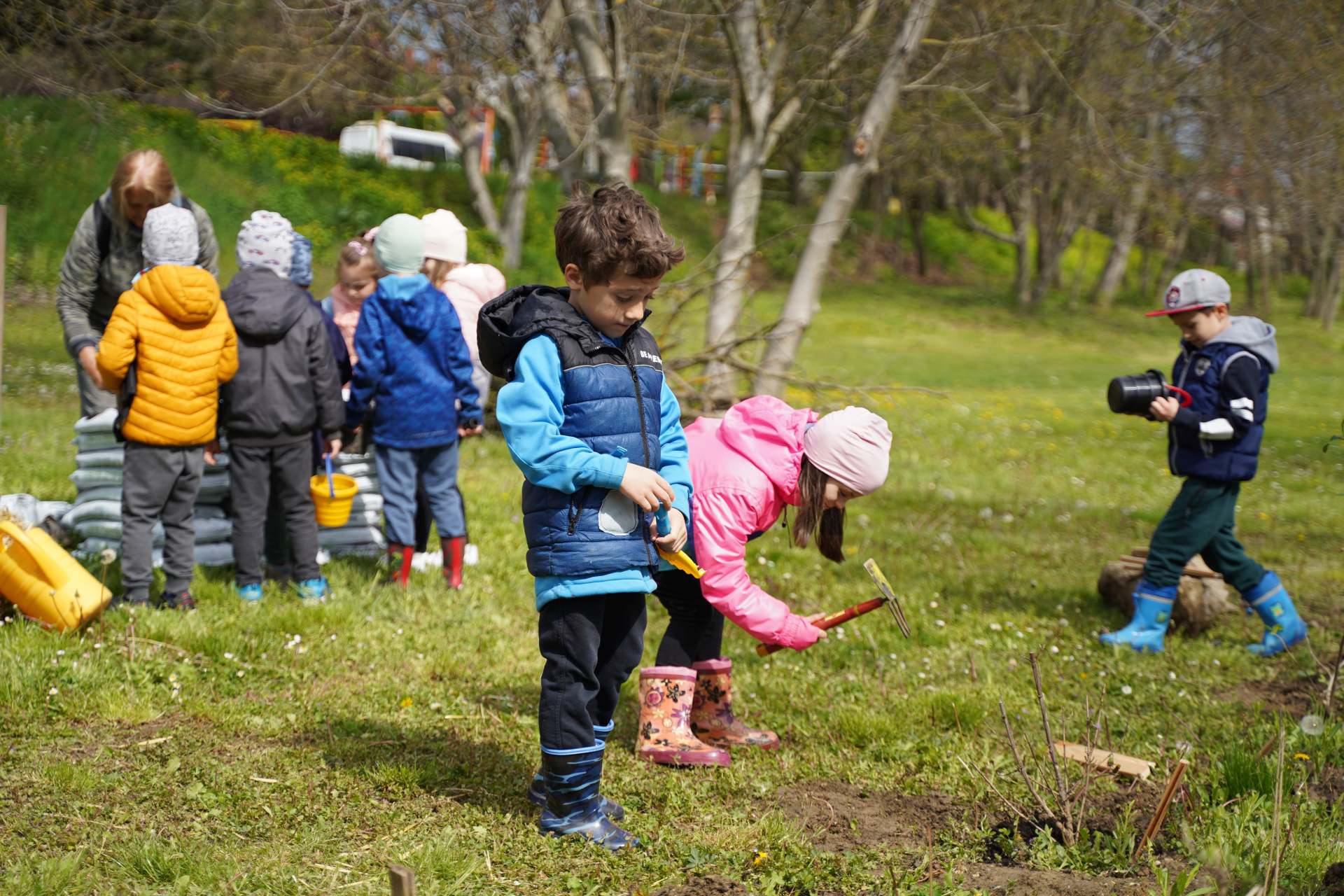 A gyerekeket első perctől kezdve arra ösztönözzük, hogy segítsenek nekünk növényeket ültetni, majd azokat gondozni az óvoda udvarán
