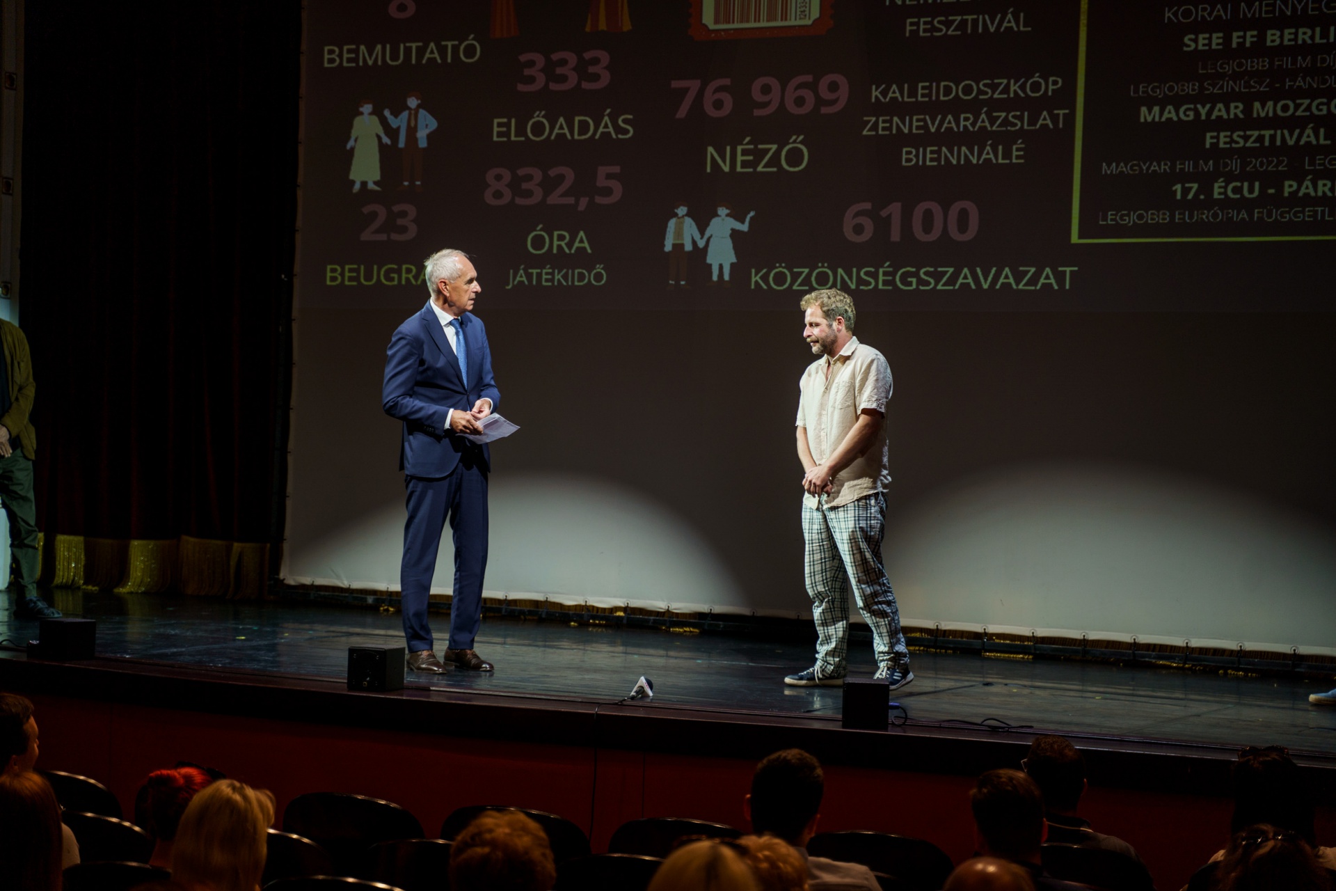Szita Károly Kaposvár polgármestere köszöntőjében kitért arra, hogy a színház tevékenységi köre a különböző rendezvények szervezésével, lebonyolításával is kiegészült, ám ennek ellenére is egy rendkívül sikeres évadot tudhat maga mögött a társulat.