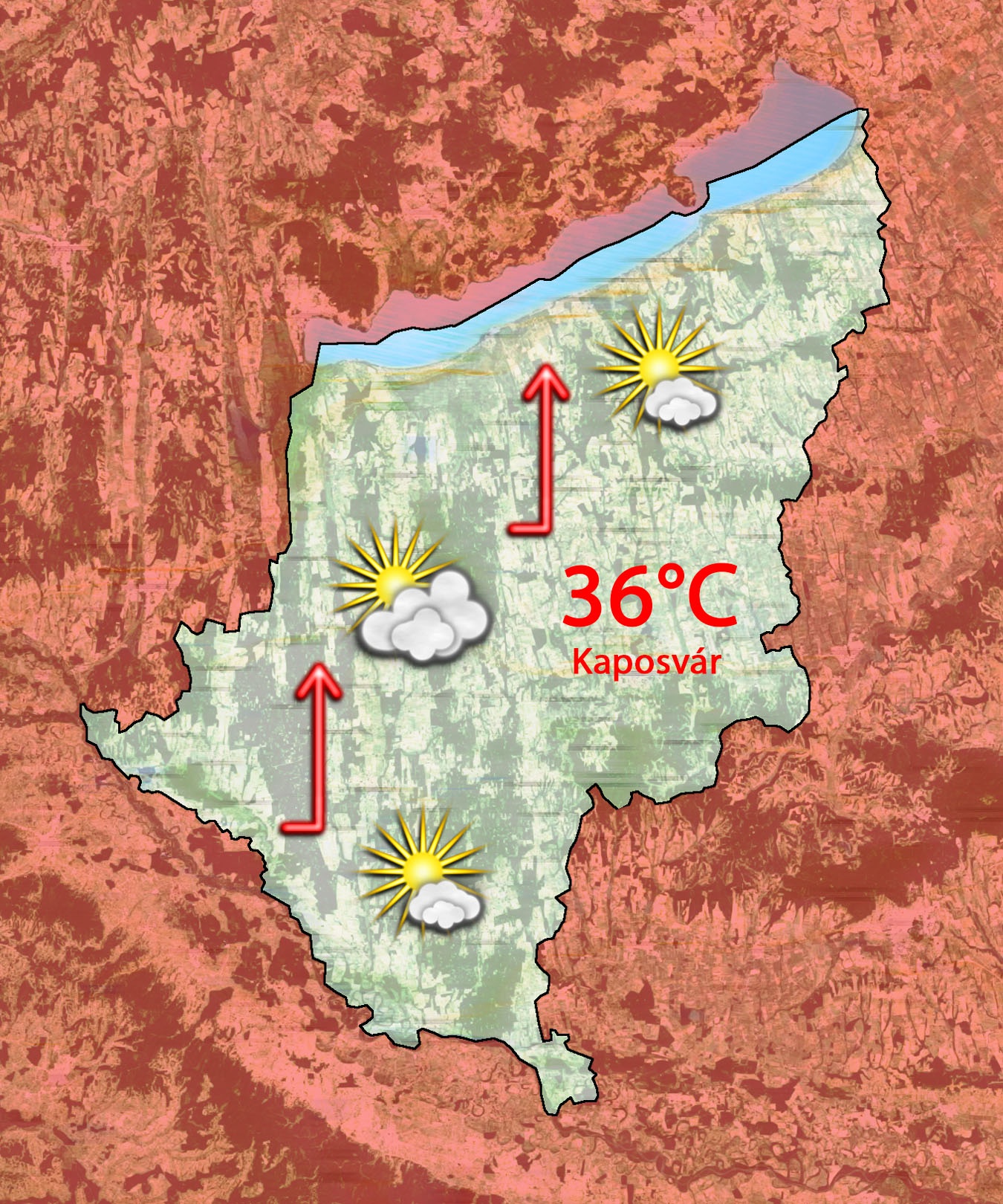 Péntek napközben gyengén felhős lesz az ég és csapadék nem várható. Délután 36 °C-ig emelkedik a hőmérő higanyszála. A déli szél gyengén fúj majd.
