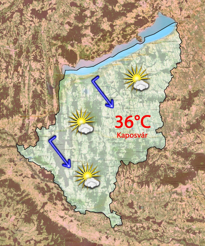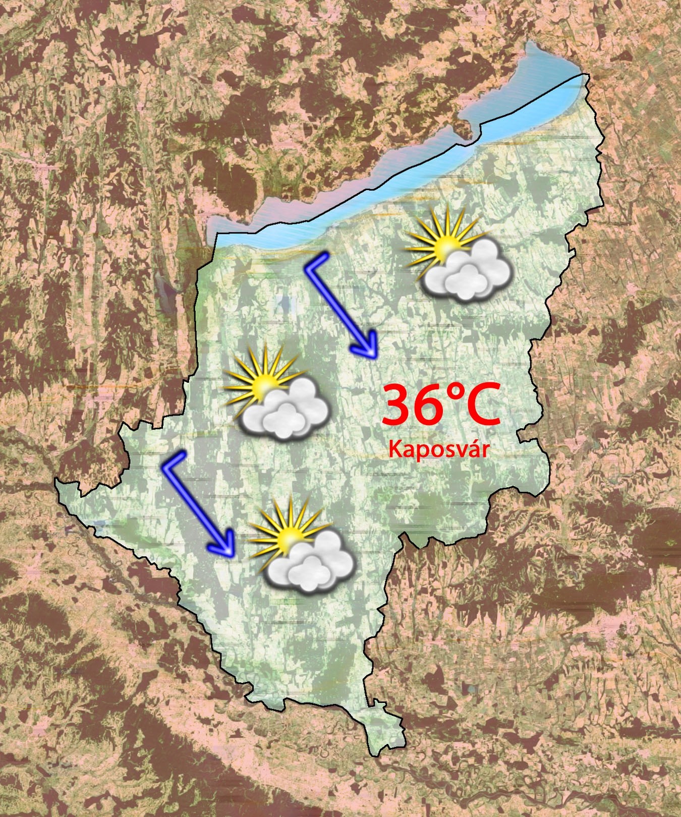 Vasárnapig folyamatos melegedés valószínű. Ráadásul a hétvégi kánikula után sem várható felfrissülés. Középtávú előrejelzés Kaposvár és környékére.