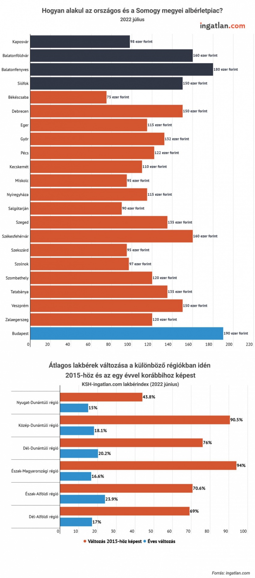 Csúcssebességre kapcsolt az országos albérletpiac, miután megtörtént a felvételi ponthatárok kihirdetése. Július végén országszerte összesen több mint 10 ezer kiadó lakóingatlan várt bérlőre, de az országon belül jelentős eltérések vannak a kínálatban és az árakban egyaránt - ez áll többek között egy friss elemzésében. Az összefoglaló bemutatja, hogy Somogy megyében mire számíthatnak a bérlők és hogyan alakulnak a bérleti díjak. Valamint az is kiderül, hogy a megyét magában foglaló Dél-Dunántúli régióban 2015-höz képest a KSH-ingatlan.com lakbérindexe szerint mennyivel emelkedtek az árak.