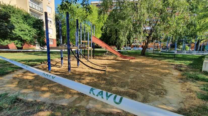 Jelenleg a Sávháznál és az Arany János teszik rendbe a játszótereket.