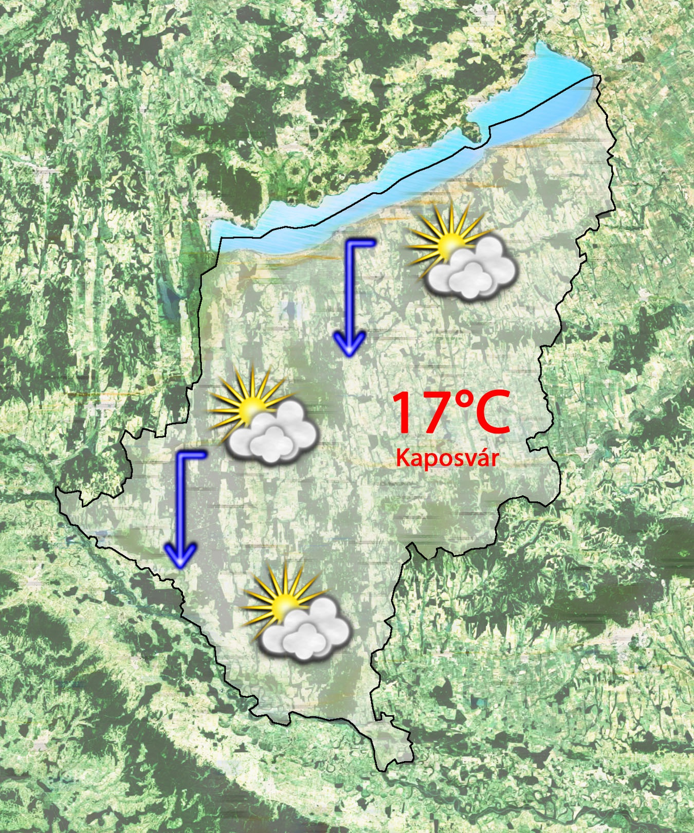 Szerda délután közepesen felhős lesz az ég. A szél északról fúj gyengén. 17°C-ig melegszik a levegő hőmérséklete. Csapadék előfordulhat egy-egy záporeső formájában.