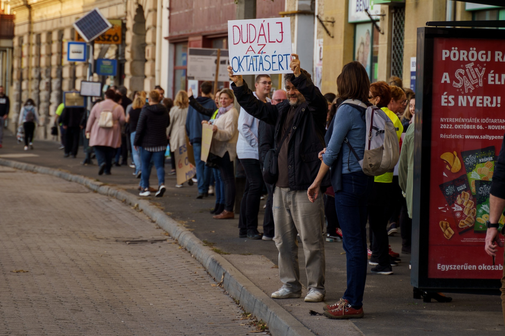 Október 14-én, egy nappal azután, hogy Gulyás Gergely Miniszterelnökséget vezető miniszter bejelentette a pedagógusok béremelését, országszerte tüntetéseket szerveztek az oktatás állapota és a tanárok kirúgással való fenyegetése miatt.