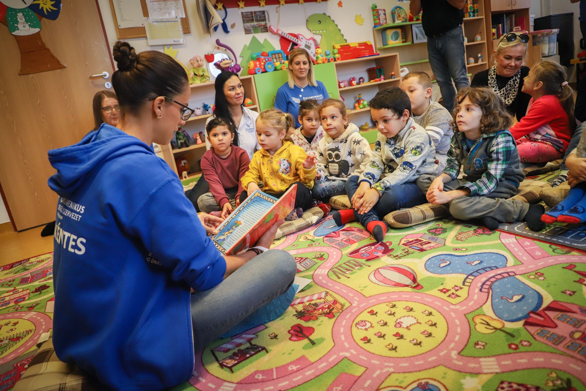 Az Ökumenikus Segélyszervezet kaposvári biztos kezdet gyerekházának mesedélelőttjén Trokán Anna olvasott mesét a kicsiknek. A mesekönyvgyűjtő akcióhoz az ország 700 pontján lehet csatlakozni november 6-ig.
