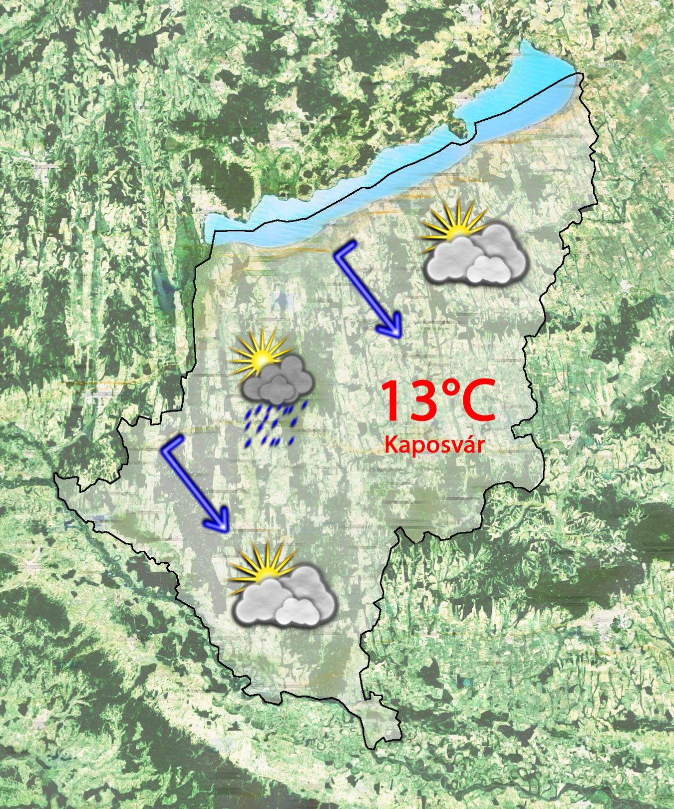 Csütörtökön egy gyenge hidegfront miatt felhős időszak érkezik. Középtávú előrejelzés Kaposvár és környékére.