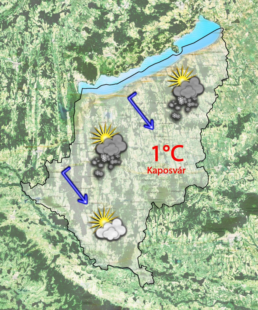 Szombaton borongós lesz az ég és egyre több helyen havazásba vált az esőzés. Napközben csökken a felhőzet északnyugat felől és megszűnik a csapadék. Esetleg egy-egy hózápor lehet majd. 1 fokig emelkedik a hőmérséklet. Mérsékelt, olykor élénk lehet az északnyugati szél.