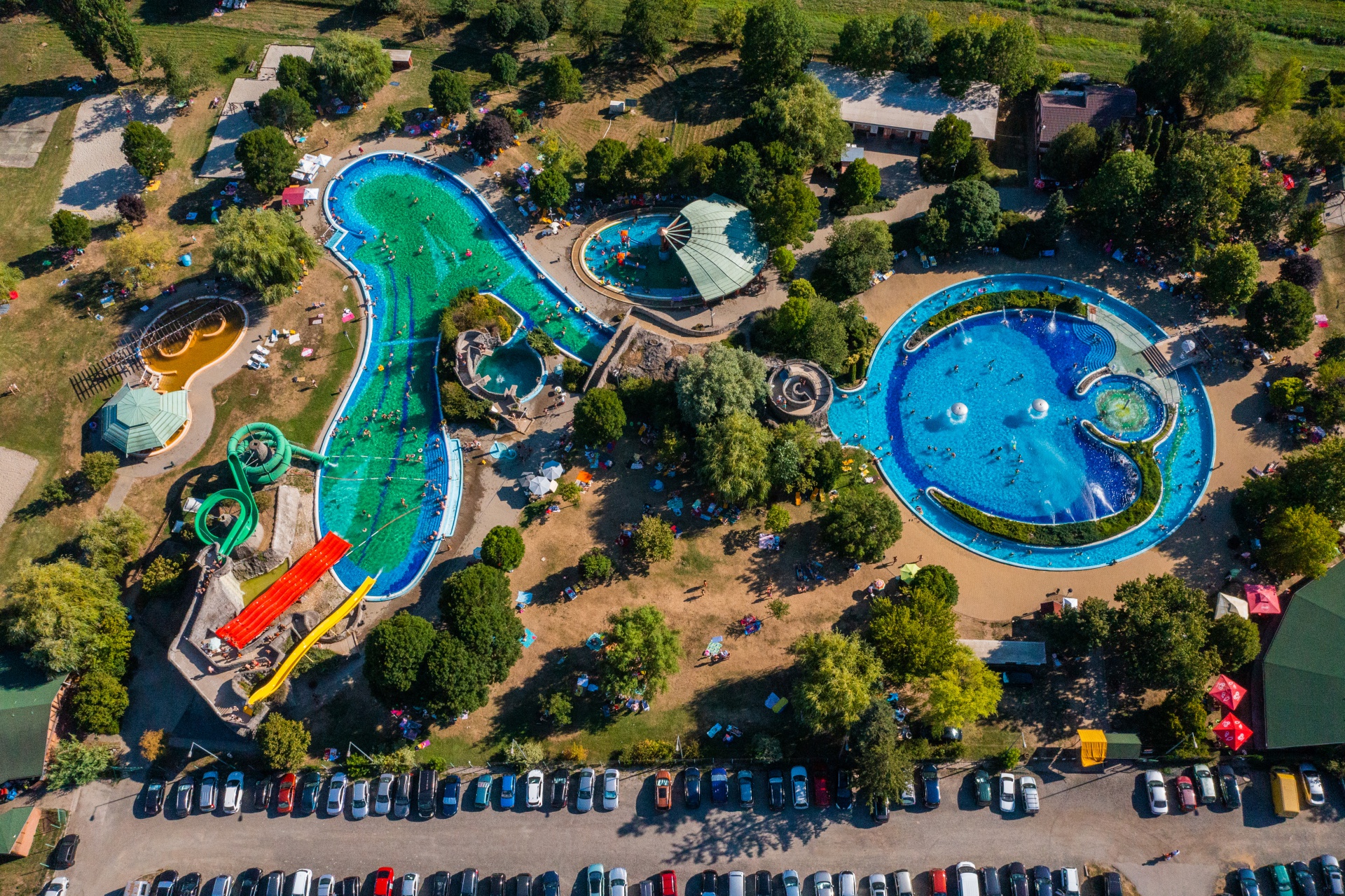 Nyáron a strand vonzza a látogatókat, ahol a csúszdák és a víz alatti élményelemek biztosítják a felhőtlen szórakozást.