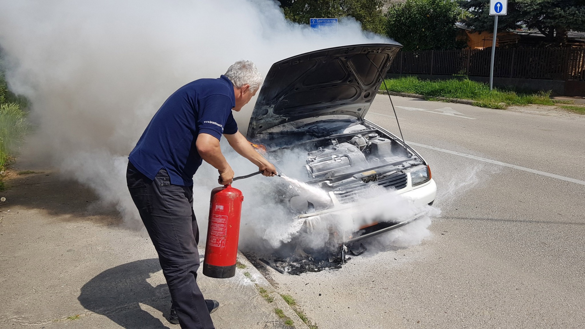 Így történt ez a mai nap déli órájában, amikor az útkereszteződésnél lakhelyünk közelében kigyulladt egy golf személyautó. A tűzoltók kiérkezése előtt szerencsére egy méretes porral oltó segítségével sikerült a továbbterjedés megakadályozni. A járműben utazók sértetlenül megúszták.