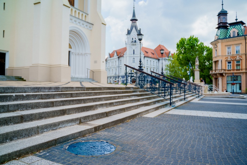 A Nagyboldogasszony-székesegyház előtti lépcső rozsdásodó, fekete színű korlátai és a Kossuth tér néhány csatorna fedlapja új színt kaptak a napokban.
