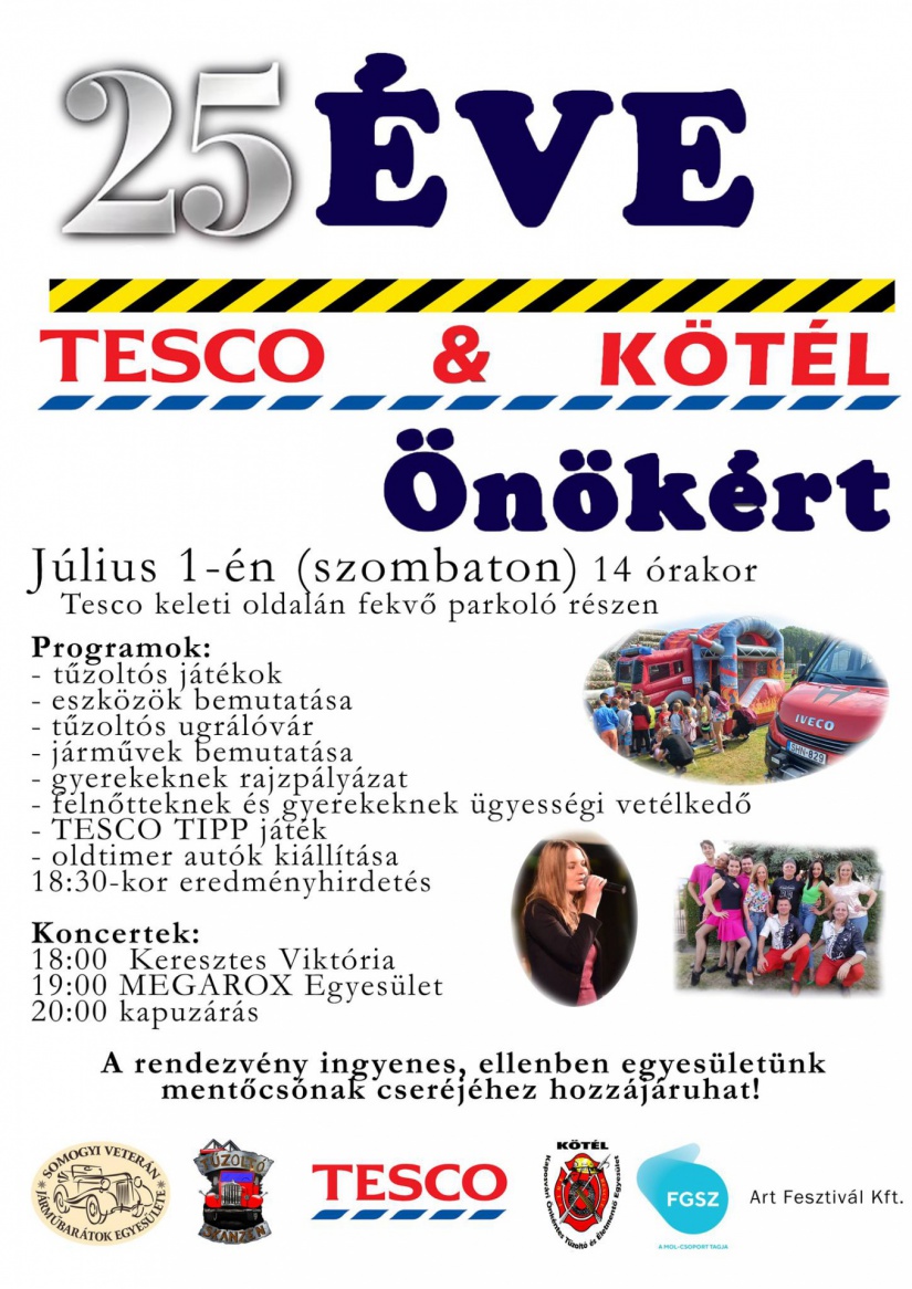 A Kaposvári Önkéntes Tűzoltó és Életmentő Egyesület a Tesco Áruházlánccal karöltve rendezi meg ingyenes eseményét július 1-jén, hogy megünnepelje fennállásának 25. évfordulóját.