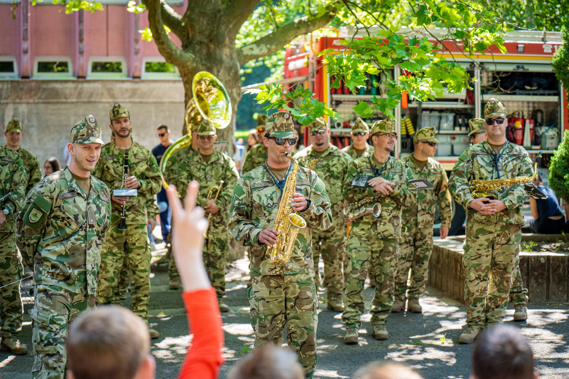 A rendhagyó hétfőn a tűzoltóság, a logisztikai ezred és a helyőrségi zenekar is bemutatkozott.