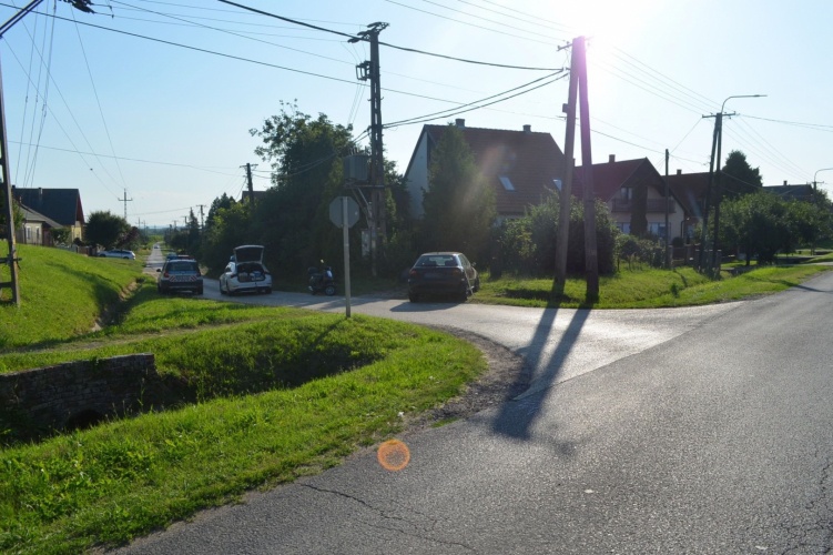 A motoros az ütközés elkerülése érdekében előzni kezdett, amit az autós szintén nem észlelt, és a következő lehetőségnél balra fordulva nekiütközött a motorosnak. A balesetben a segédmotort vezető férfi és a biztonsági övét nem használó nő is könnyebben megsérült.