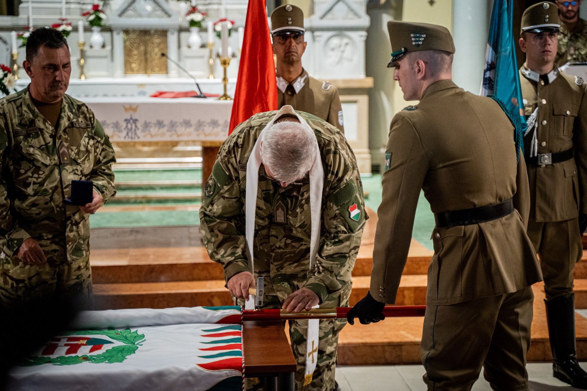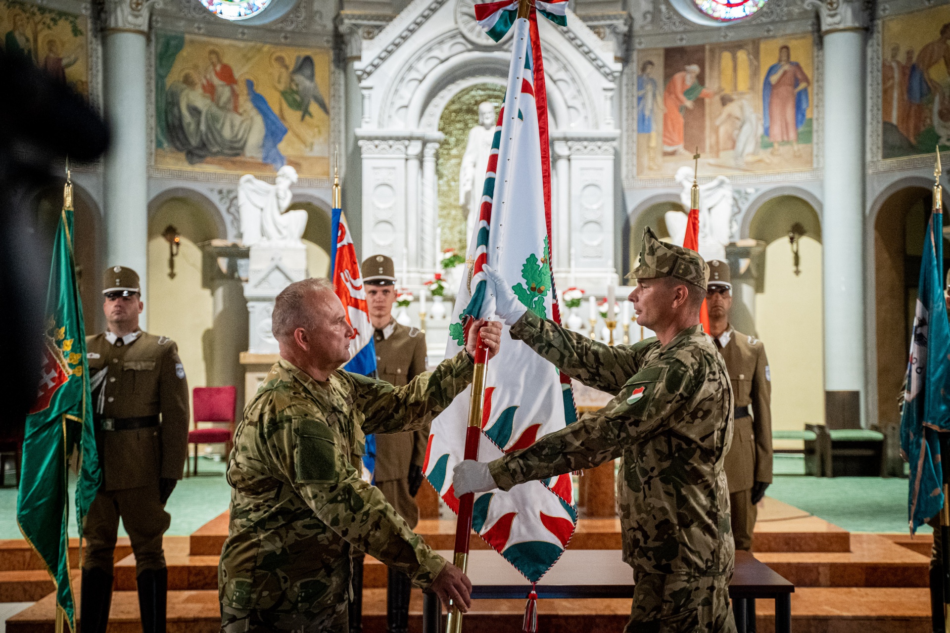 Ezt követően Jákob János dandártábornok, protestáns tábori püspök és Horváth József alezredes kiemelt katolikus tábori lelkész megáldották a csapatzászlót.