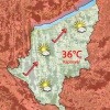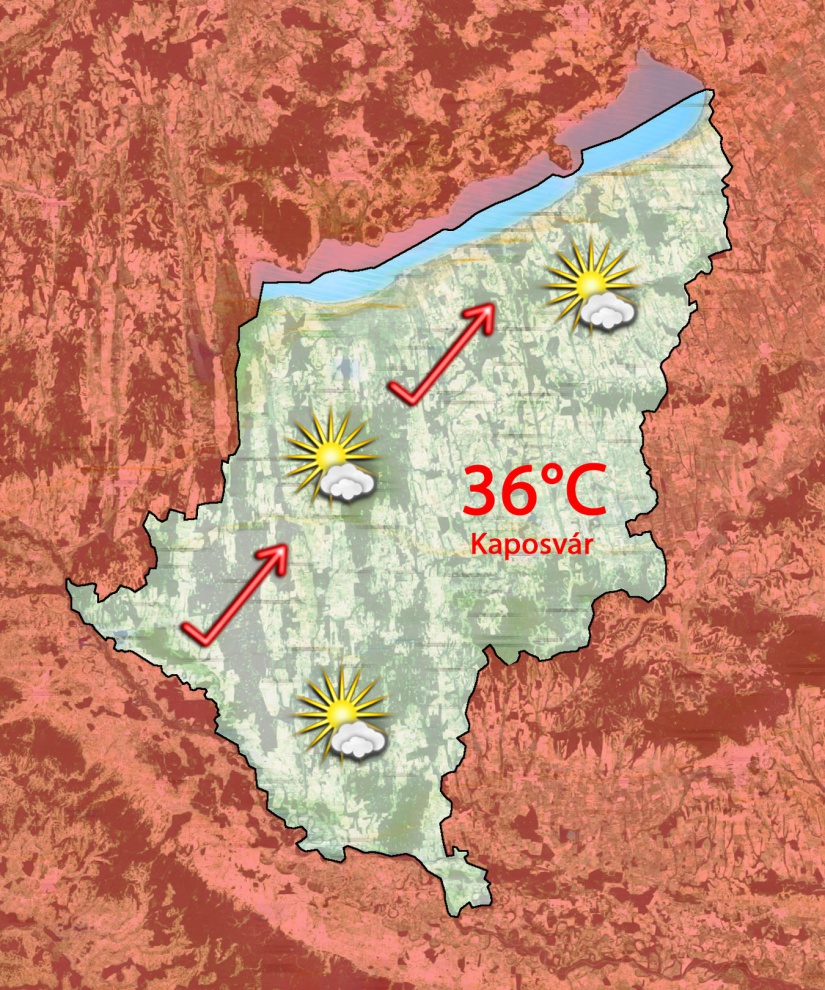 Péntek délutánra 36°C-ig kúszik fel a hőmérő higanyszála. Gyengén felhős ég mellett tűző napsütés és nagy meleg várható. Gyenge délnyugati szél fúj majd.