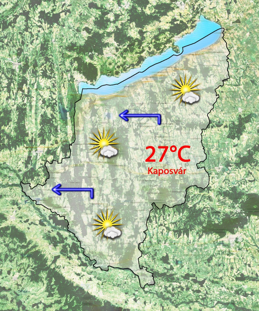 Csütörtök reggel 11°C-ig csökken a hőmérséklet a gyengén felhős ég alatt. Néhol lehetnek köd és párafoltok. Napközben sok napsütés várható. 27°C-ig kúszik fel a hőmérő higanyszála. Gyengén fúj majd a keleti szél.