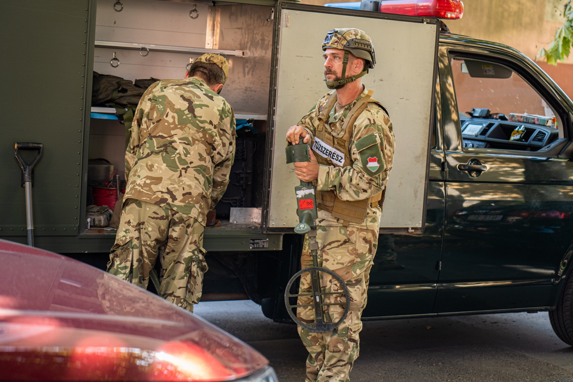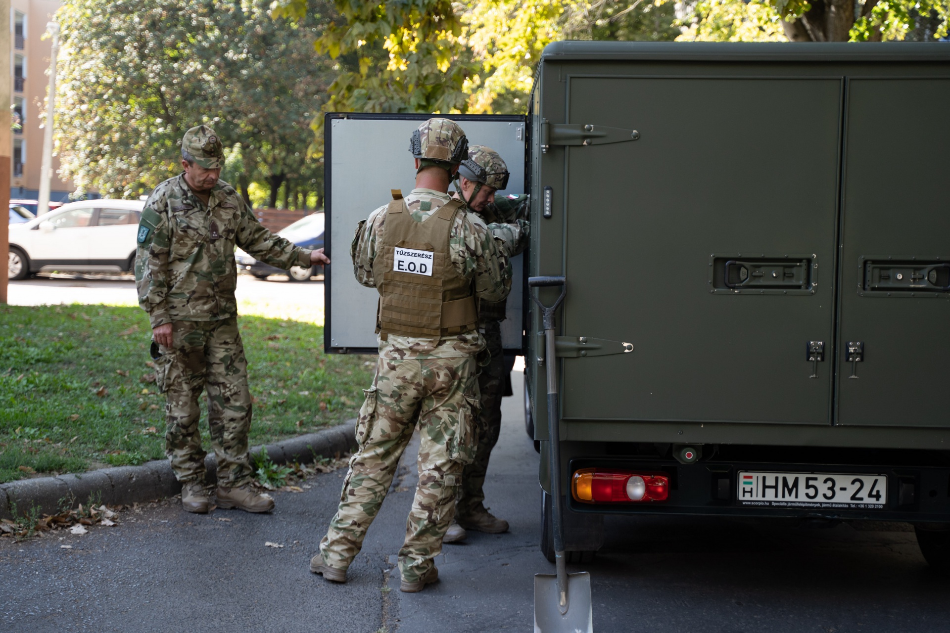 A szakemberek megállapították: egy 120 mm-es aknavető gránát stabilizátor részéről van szó. A helyszíni vizsgálatot követően az egyik tűzszerész felemelte a szerkezetet és a speciális járműbe, egy homokkal töltött tálcára helyezte.