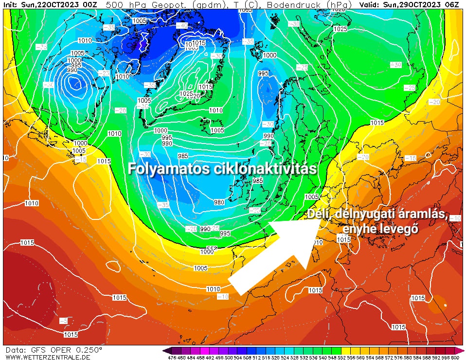Mindez annak köszönhető, hogy Nyugat-Európában erős ciklonaktivitás zajlik, emiatt déli áramlás határozza meg az időjárást a térségben.