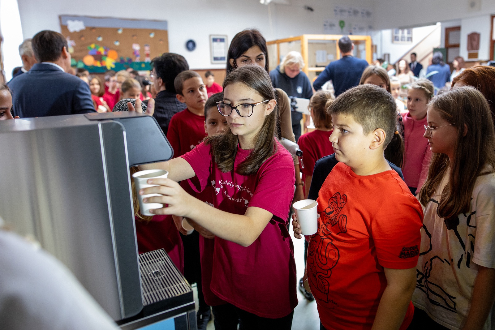 Az eseményen az iskola kórusa adott rövid műsort, majd a gyerekek saját kulacsot kaptak, és rögtön ki is próbálták az új automatát.